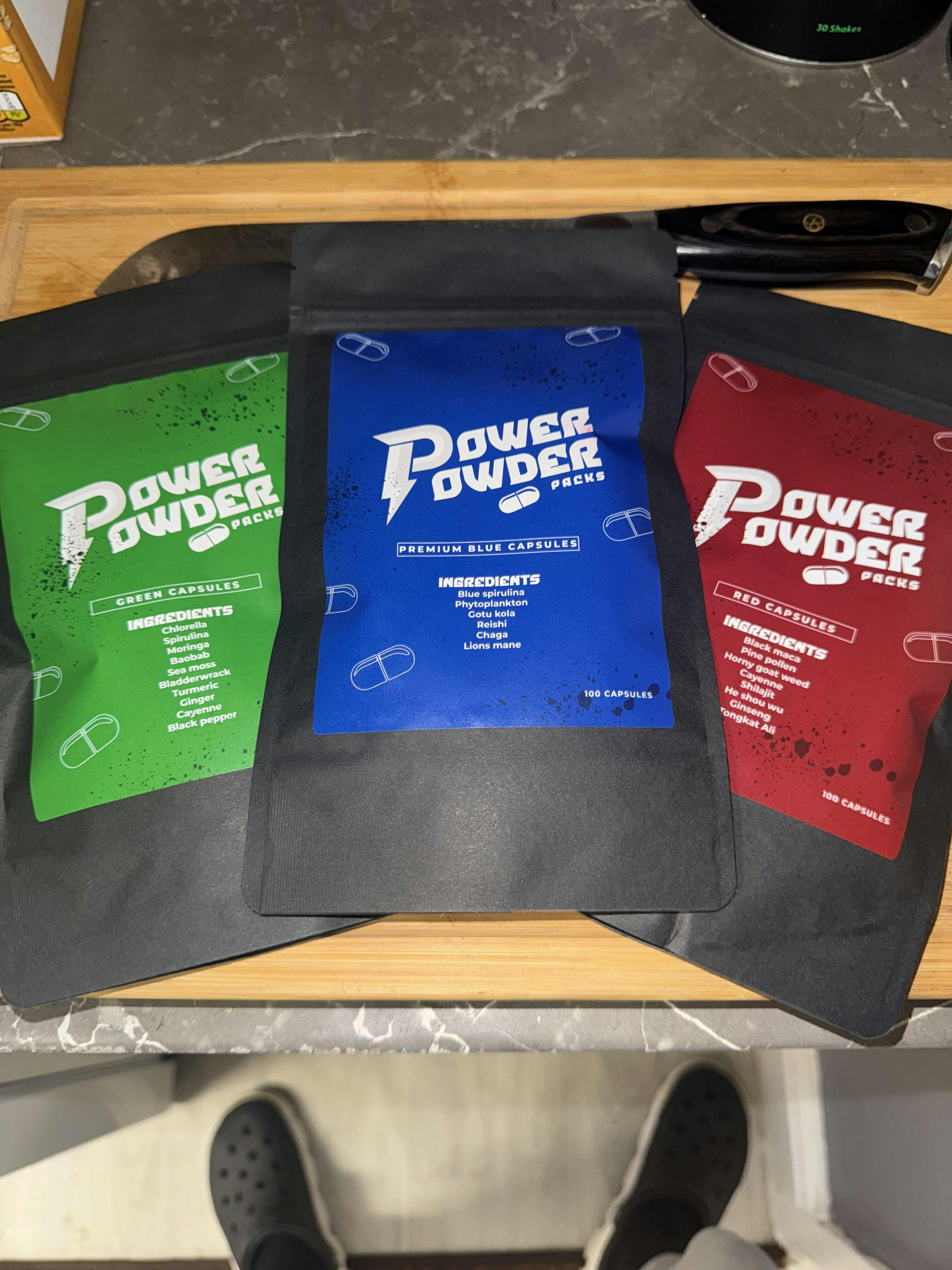 One of our most popular packs. The green pack capsules. The main green ingredients in this pack are chlorella, moringa, spirulina & wheatgrass. This pack can help both internally & externally.